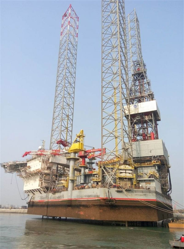 2015年12月8日,中集來福士承建的第二座400英尺自升式鉆井平臺在龍口基地完成站樁作業。全船插樁、站樁過程僅用40分鐘,氣隙2米。