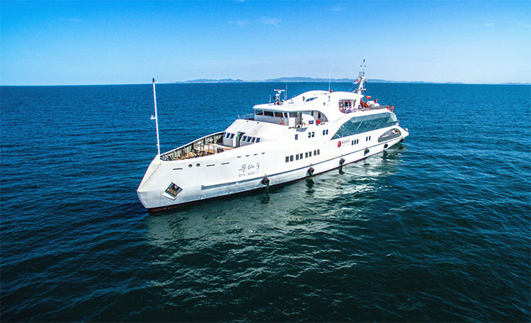4艘“求仙”系列99客位主題游艇是中集來福士在游艇領(lǐng)域打造的又一精品工程,用于秦皇島沿海航線、崆峒島沿海航線及環(huán)島游。“求仙”系列在造型設(shè)計(jì)上也別具特色,采用戰(zhàn)斧式船首和流線型設(shè)計(jì),外觀美麗大方,還能夠提高游艇的航行性能和舒適性。在建造工藝上,船體與上建均用鋼制結(jié)構(gòu),可靠耐用,尤其適用于暗礁、浮冰、地形復(fù)雜的海域。此外,“求仙”系列觀光甲板人均面積達(dá)到1.5平方米,游客可以一邊舒適地吹海風(fēng)、喂海鷗、看風(fēng)景,一邊在山水間感受“仙人境界”。