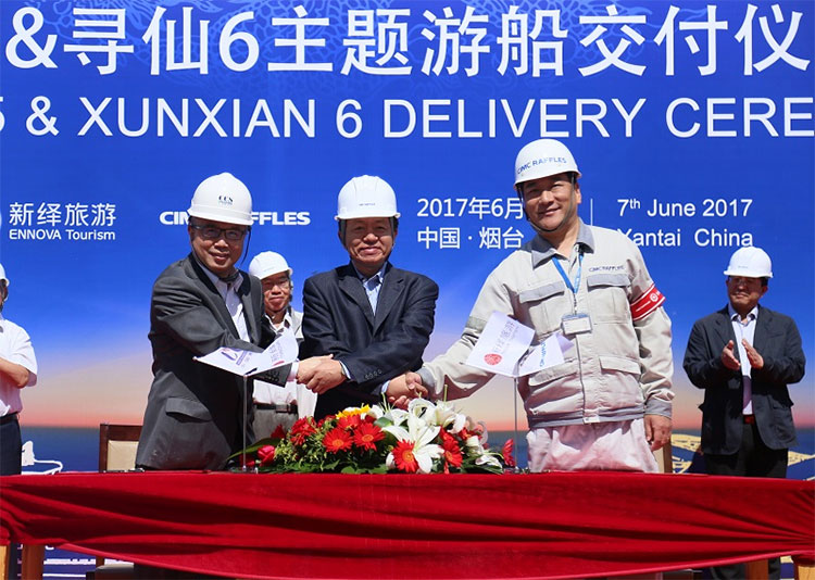 2017年6月7日,中集來福士海洋工程有限公司(簡(jiǎn)稱“中集來福士”)為北部灣旅游股份有限公司(簡(jiǎn)稱“北部灣旅游”)旗下全資子公司煙臺(tái)新繹游船有限公司(簡(jiǎn)稱“新繹公司”)設(shè)計(jì)建造的2艘“尋仙”系列主題游船和4艘“求仙”系列99客位主題游艇分別在煙臺(tái)建造基地和龍口建造基地交付,這是中集來福士在旅游供給側(cè)改革方面取得的突出成績(jī),夯實(shí)了中集來福士在高端游船和游艇領(lǐng)域的自主研發(fā)和批量建造能力,對(duì)于提升雙方高端海洋旅游品牌影響力也具有重要推動(dòng)作用。