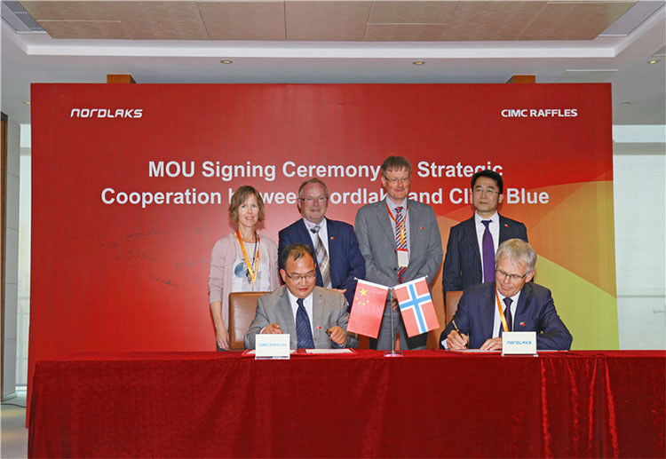 當(dāng)日,Per Sandberg部長(zhǎng)還見(jiàn)證了中集藍(lán)與Nordlaks簽署戰(zhàn)略合作協(xié)議。根據(jù)協(xié)議,中集藍(lán)與Nordlaks就設(shè)計(jì)建造新一代“Havfarm”系列工船達(dá)成合作意向,包括但不限于活魚(yú)運(yùn)輸船、魚(yú)產(chǎn)品加工船等;雙方共同探討從挪威向全球出口、銷(xiāo)售以及加工高品質(zhì)三文魚(yú)及其它海產(chǎn)品的合作模式;雙方承諾把彼此作為魚(yú)類(lèi)養(yǎng)殖的全球首選合作伙伴,共同開(kāi)發(fā)漁業(yè)養(yǎng)殖解決方案。付日新表示:“中集來(lái)福士與挪威有良好的漁業(yè)合作基礎(chǔ)。下一步山東希望深化與挪威在海洋科技、人才、裝備等領(lǐng)域的交流合作,實(shí)現(xiàn)互利共贏。”