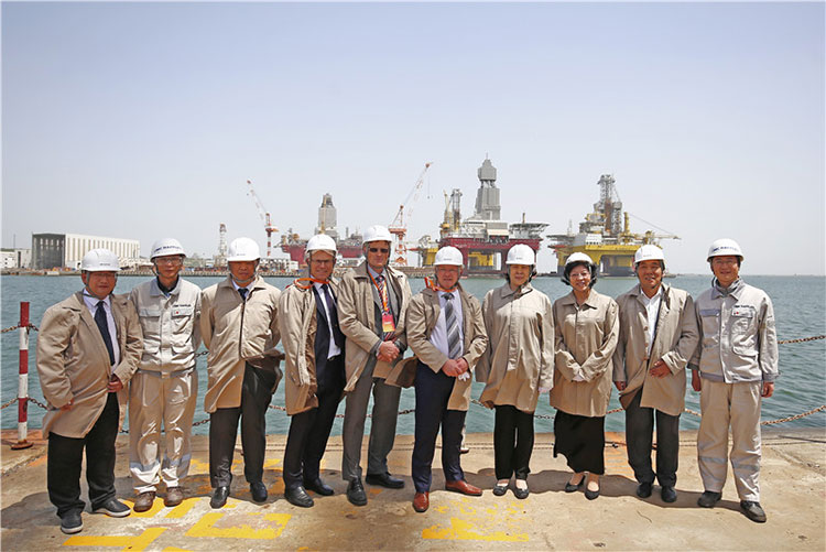 Per Sandberg部長(zhǎng)聽(tīng)取Havfarm1#深水養(yǎng)殖工船建造進(jìn)展報(bào)告后表示:“目前,挪威水產(chǎn)養(yǎng)殖產(chǎn)量約130萬(wàn)噸/年,在全球僅次于中國(guó),挪威政府計(jì)劃在2050年達(dá)成500萬(wàn)噸/年的產(chǎn)量,為實(shí)現(xiàn)這一目標(biāo),需要更加先進(jìn)且環(huán)保的技術(shù)和設(shè)備。Havfarm1#在挪威是一個(gè)非常稀有、有創(chuàng)意的項(xiàng)目,挪威政府對(duì)這個(gè)項(xiàng)目寄予厚望。Nordlaks和中集來(lái)福士的合作很有意義,相信Havfarm1#能夠按期、高質(zhì)量交付,把挪威水產(chǎn)養(yǎng)殖推入新階段。”他在參觀中集來(lái)福士煙臺(tái)建造基地期間,興致勃勃地登上2萬(wàn)噸“泰山吊”,感嘆道:“非常震撼,中集來(lái)福士在設(shè)計(jì)建造大型海工裝備、漁業(yè)裝備上實(shí)力雄厚,挪威和中集來(lái)福士還有很大的合作空間。”