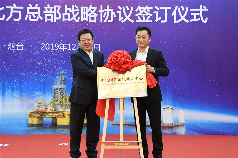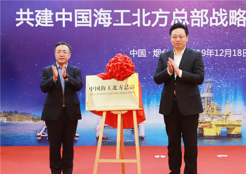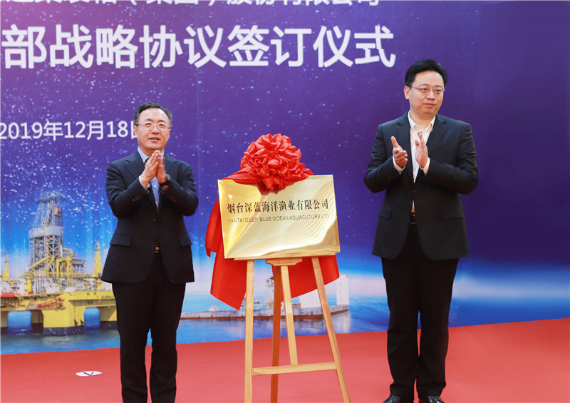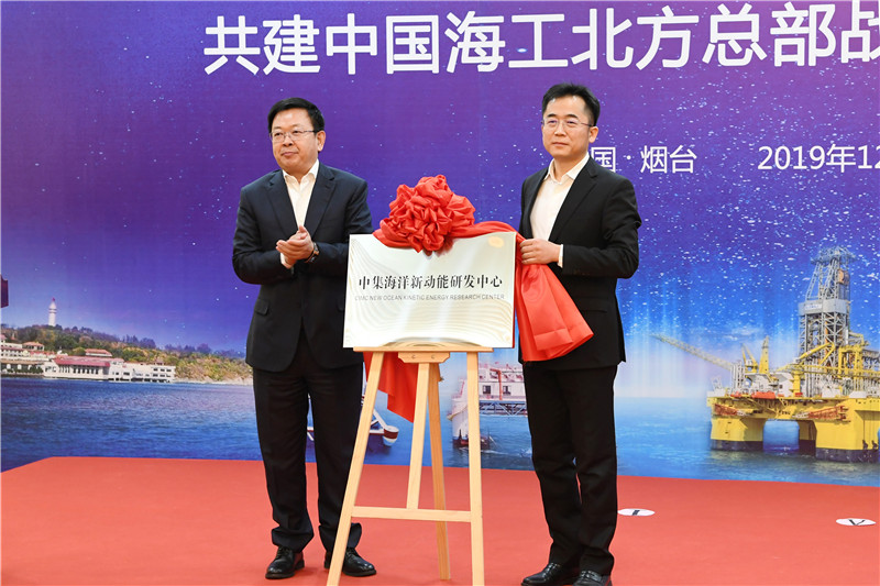 陳飛、高翔共同為籌建中的中國(guó)海工北方總部、煙臺(tái)深藍(lán)海洋漁業(yè)有限公司揭牌。張代令、王建中分別代表煙臺(tái)市政府、中集集團(tuán)簽署協(xié)議,并共同為中集海洋新動(dòng)能研發(fā)中心、中集海洋油氣研發(fā)中心揭牌。