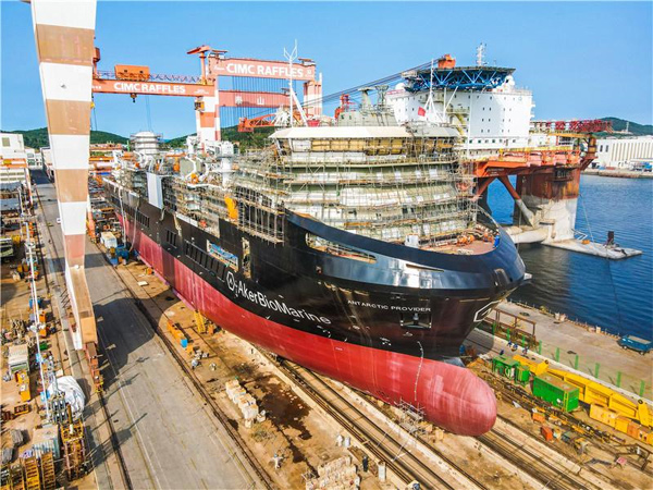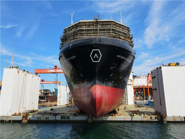 2020年9月17日,由中集來福士海洋工程有限公司(簡稱“中集來福士”)為挪威阿克集團旗下阿克海洋生物有限公司(Aker BioMarine,簡稱“阿克海洋生物”)建造的南極磷蝦運輸船項目在中集來福士煙臺基地順利下水。